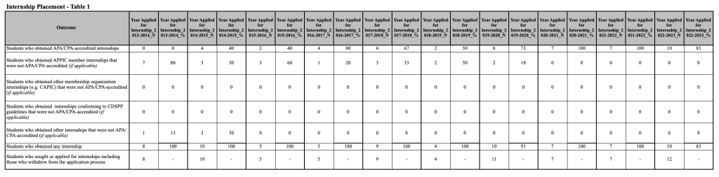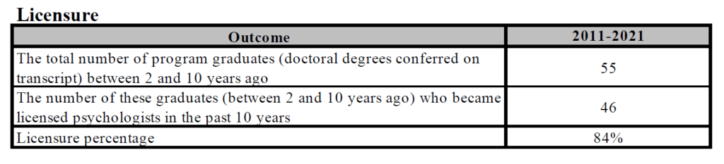The APA-accredited Doctoral Program requires four years of full-time study beyond the master’s degree (three academic and one year pre-doctoral internship). Members of the first cohort graduated in 2011.