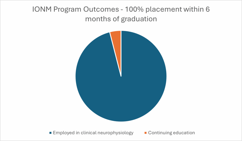 This bachelor’s program is the only one of five IONM programs listed by ASET, The Neurodiagnostic Society, to offer a BS degree that leads to a career in intraoperative neuromonitoring. Graduates can find employment in hospitals, health care companies, specialized sleep and epilepsy labs, education, academic and industry research, and industry sales.