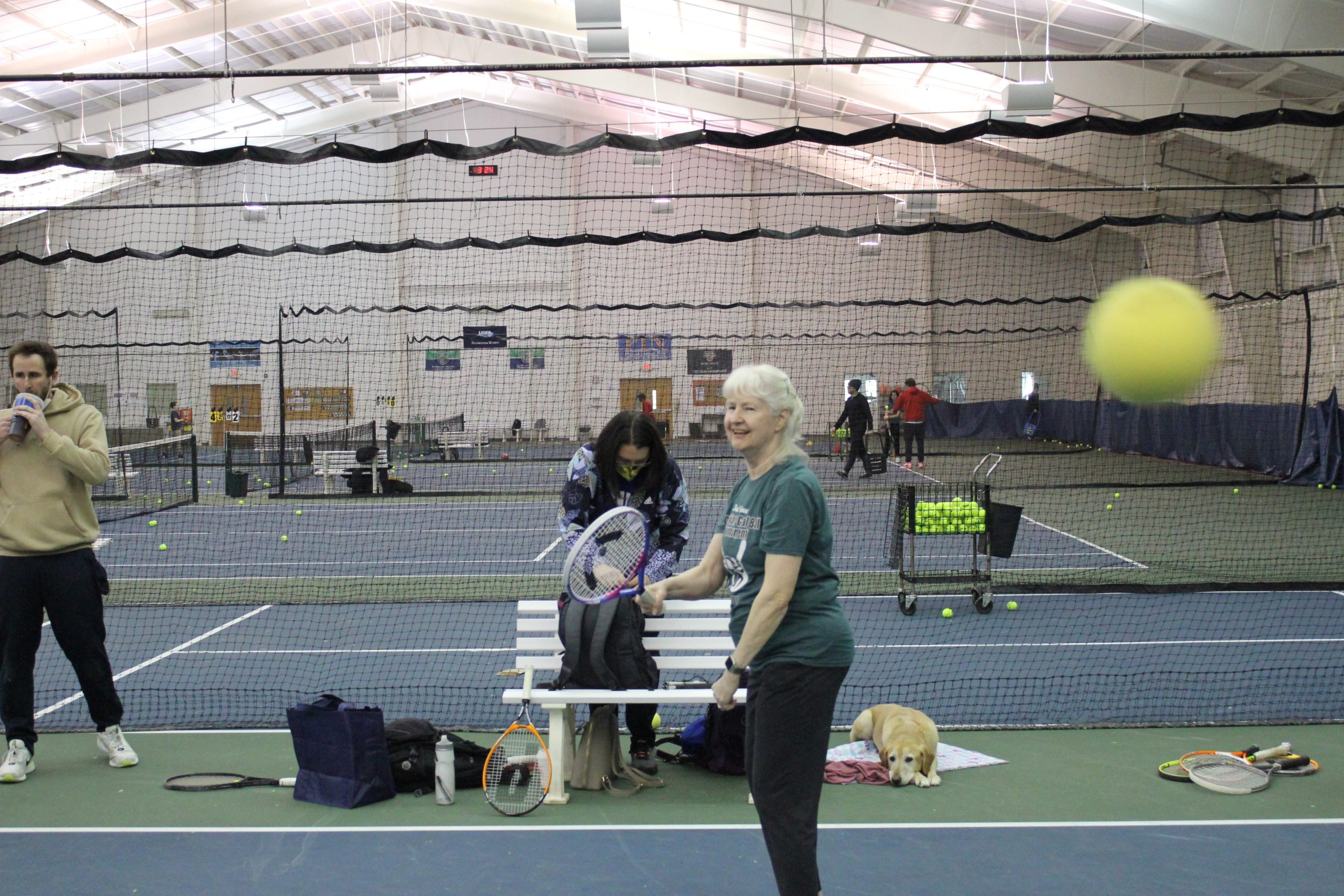 “I aged out of my primary sport,” she said with a laugh. “One day I was walking past the courts in Highland Park and thought ‘Old people play tennis. I can pick up this sport!’” Those courts in Highland Park are operated by the Highland Park Tennis Club, a local non-profit group, which Dr. Roth describes as a “diversity, equity, and inclusion group with a tennis problem.”