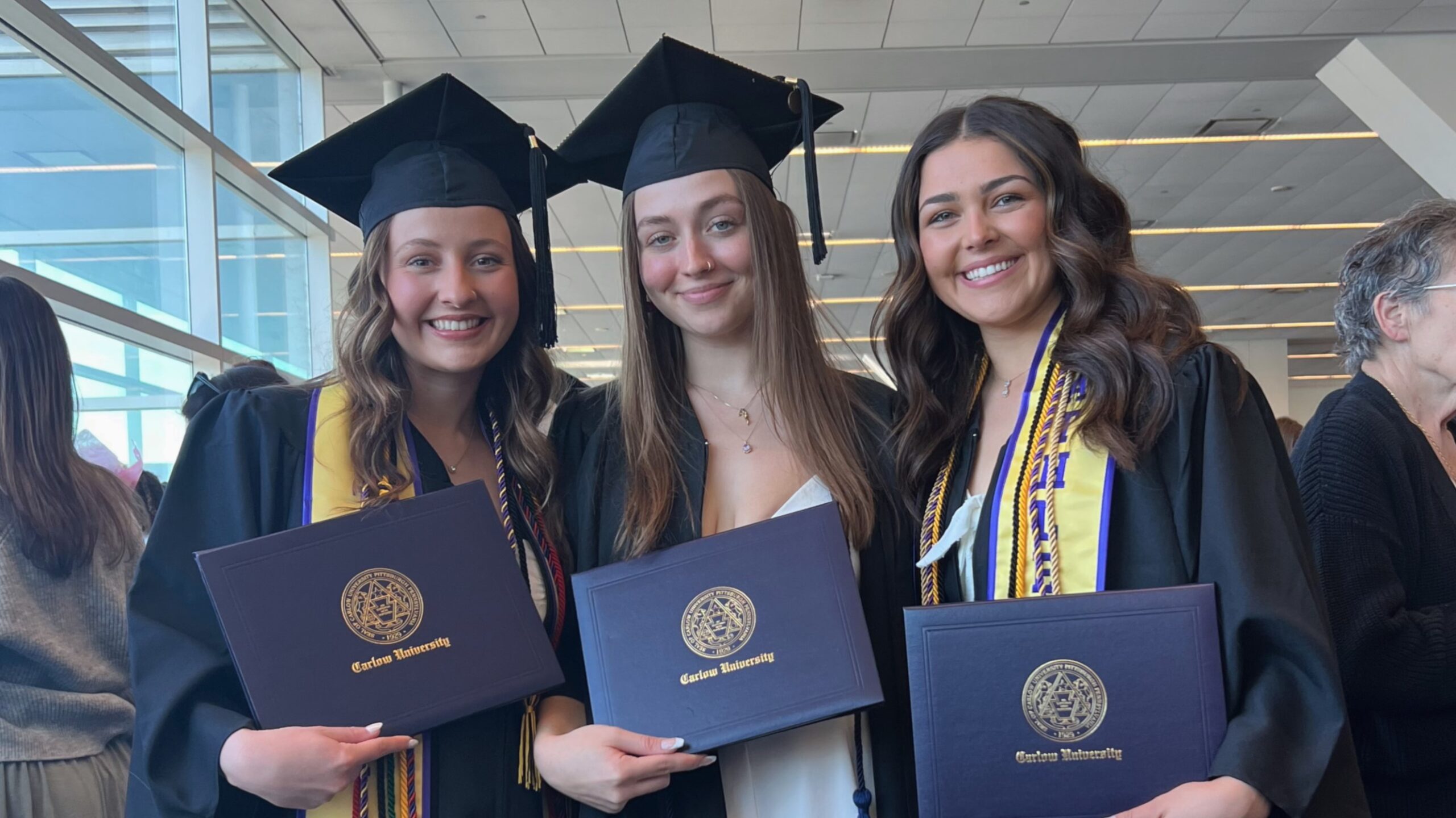 When Francesca Beighley, Jillian Durst, and Alyssa Schofield crossed the stage at Carlow’s 2025 Commencement, it wasn’t just a celebration of academic achievement—it was the latest chapter in a friendship that began more than a decade earlier on the little league softball fields of Plum Borough.